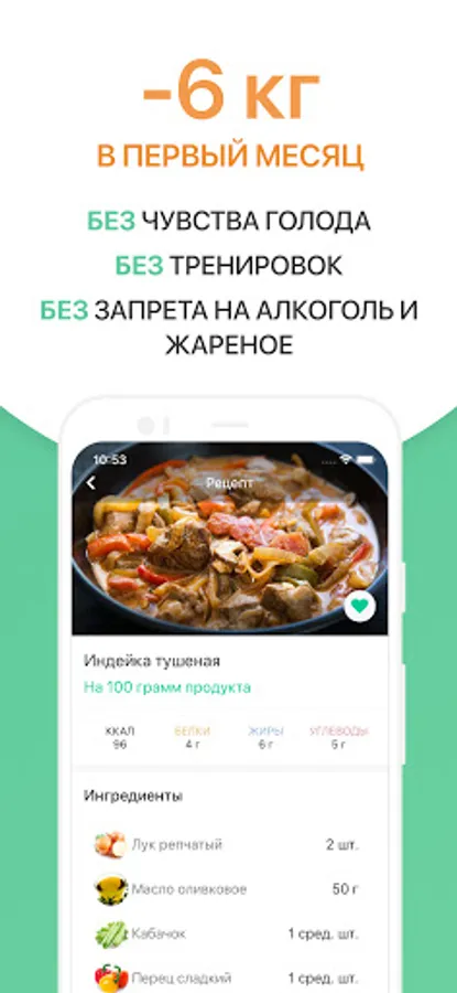 The plan comes with 700+ nutritional recipes tailored to the recommended daily foods. Quick breakfast, lunch, dinner, snacks - for each meal there is a list of dishes. You will find recipes for salads, meat, side dishes, soups, cereals and even desserts (yes, desserts also have a place in proper nutrition) - with information on calories and the level of proteins, fats and carbohydrates. Some recipes are included in such popular diets as the Ducan diet and the keto diet. Decided to cook something? Add the dish directly to the food diary. Favorite recipes have appeared - save them to your favorites, so you always have it at hand.