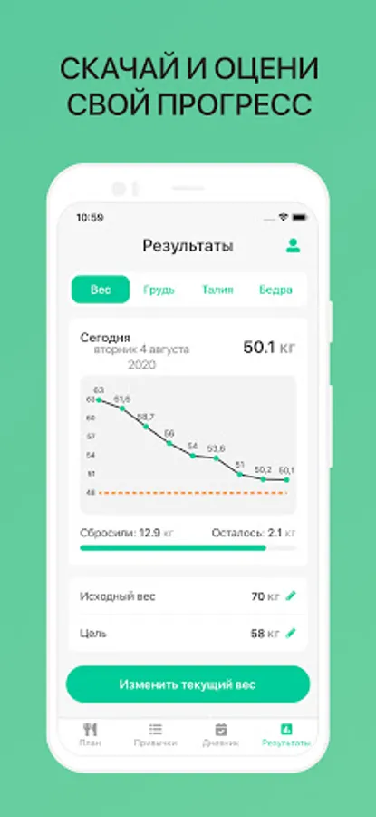 In addition to the nutrition diary, it is also important to keep a diary of body mass. Weigh yourself regularly and make any changes to it so that the weight loss process is visual. If you play sports, the weight may not go away, as you build muscle, so also monitor your volume.