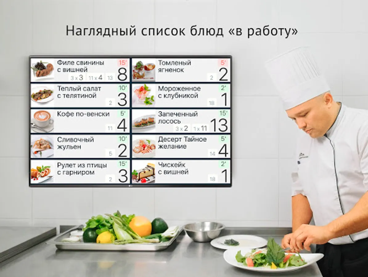- Convenient order grouping - the chef himself chooses how to arrange dishes on the screen: