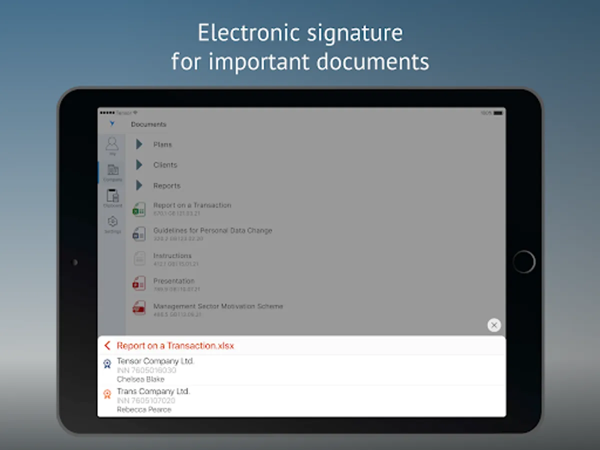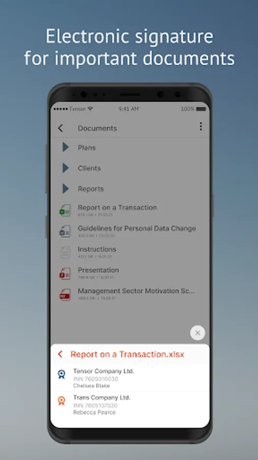 Sign documents right in the mobile app. The system supports all e-signature types: qualified, unqualified, and basic.
