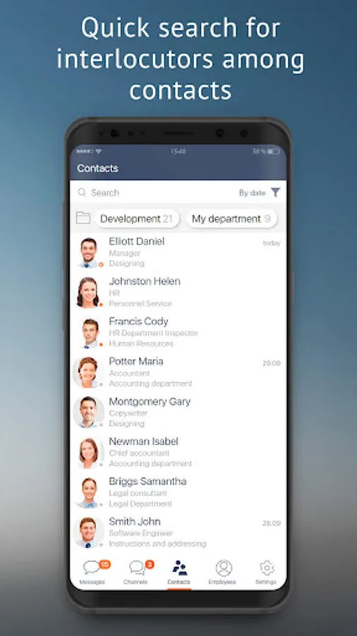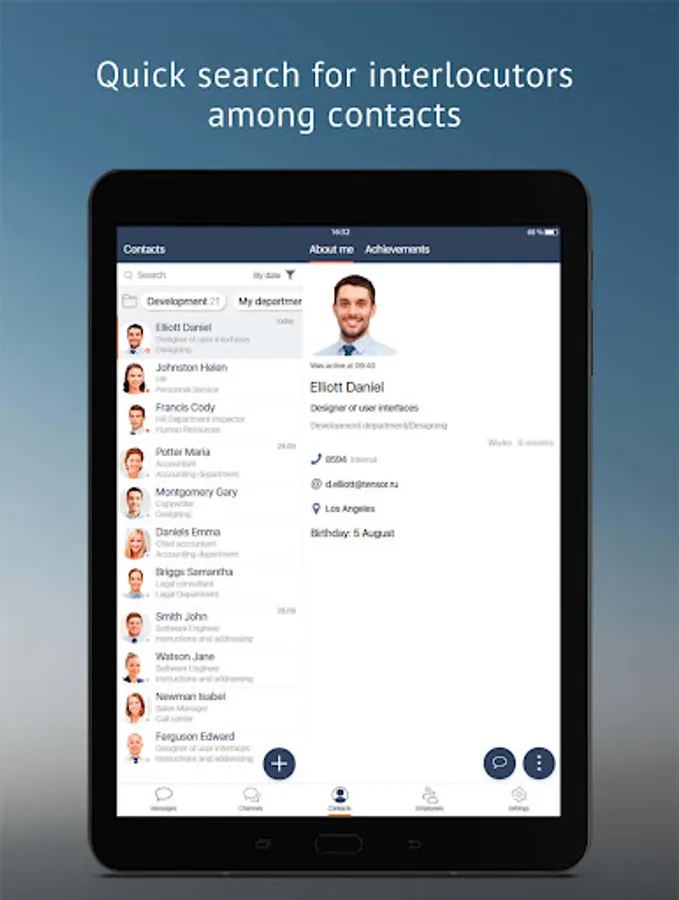 Quick search for contacts among colleagues and