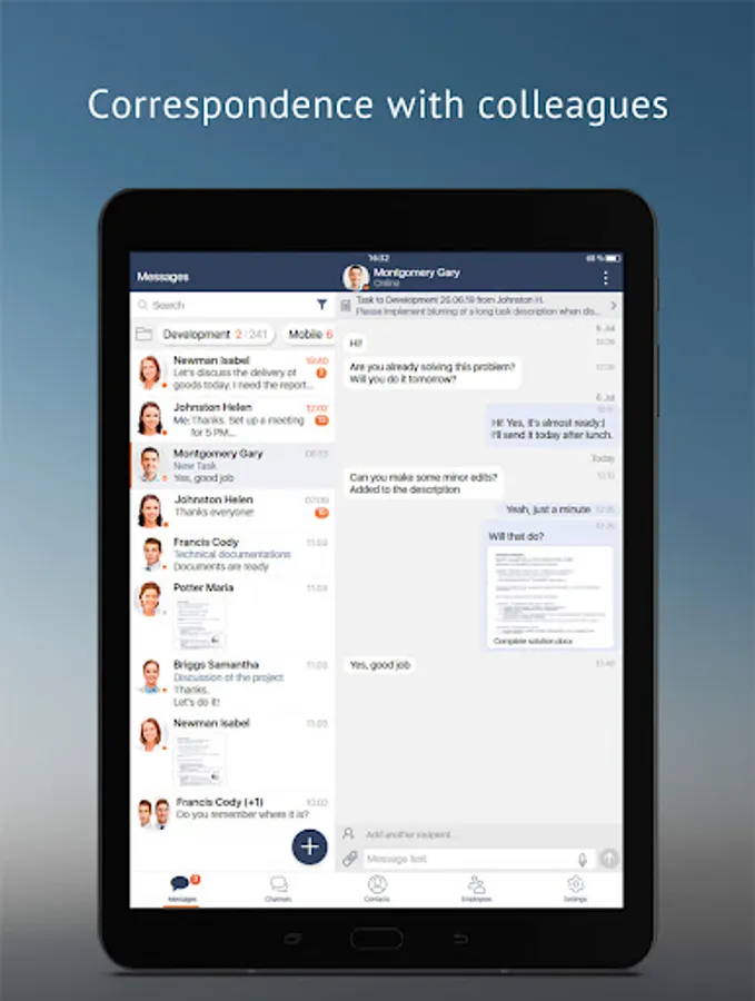 Business Messenger – instant messages, exchange of