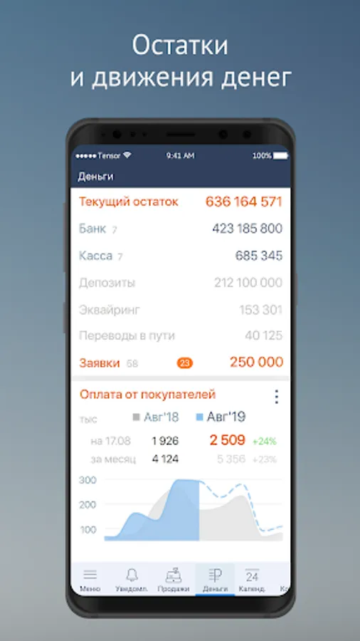 • Report on money - balances on accounts, at cash desks and on a deposit.