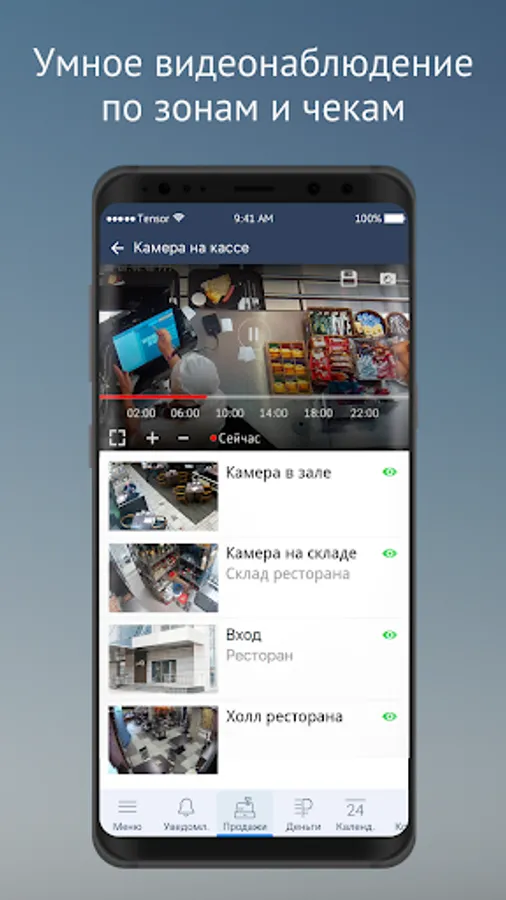 • Notifications - whether your points are opening / closing on time, about problems with cash registers, receipts for manual discounts and other questionable transactions with the attached video.