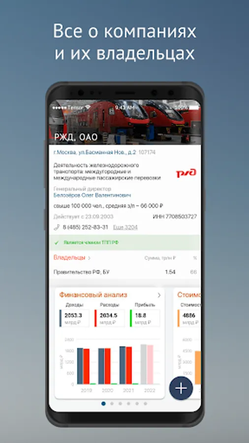 • Everything about companies - details, owners, finances, business value and other relevant information about companies in your region and Russia.