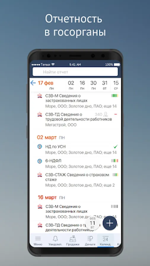 • Reporting to government agencies - view and send reports, in the VLSI calendar, keep track of which form to submit next, control the status of sending.