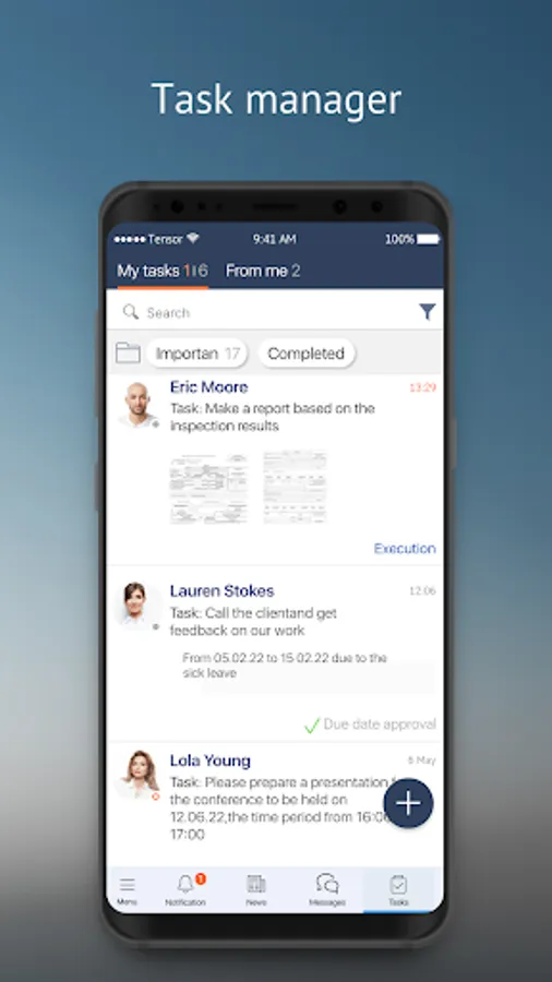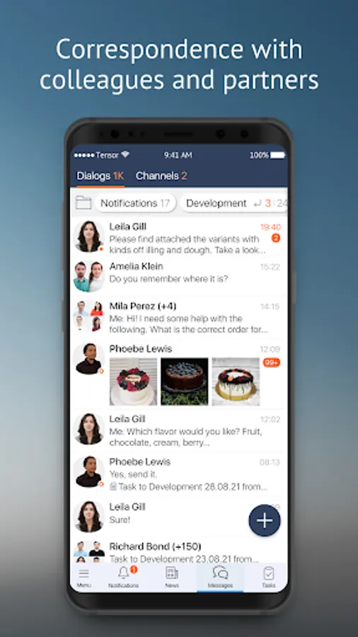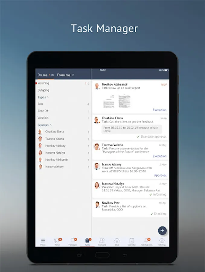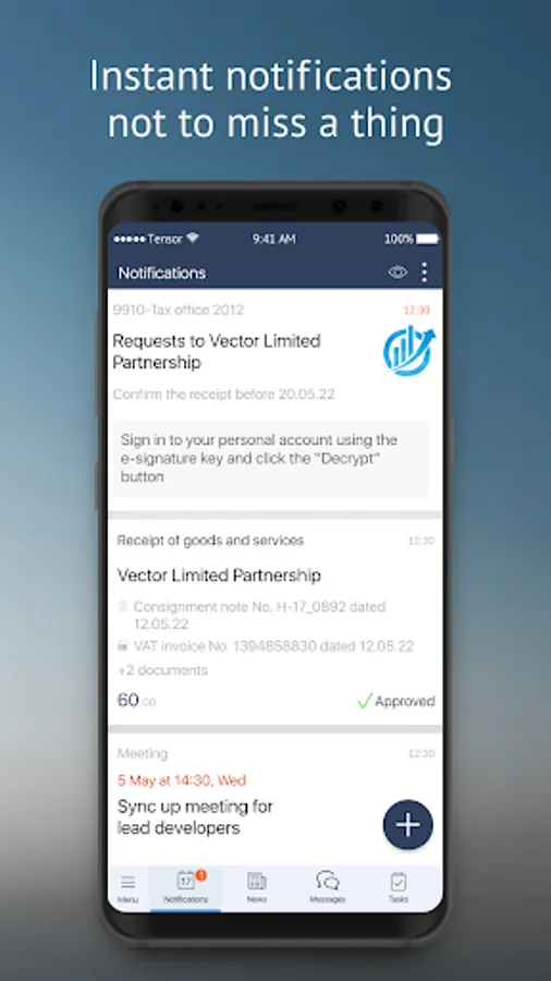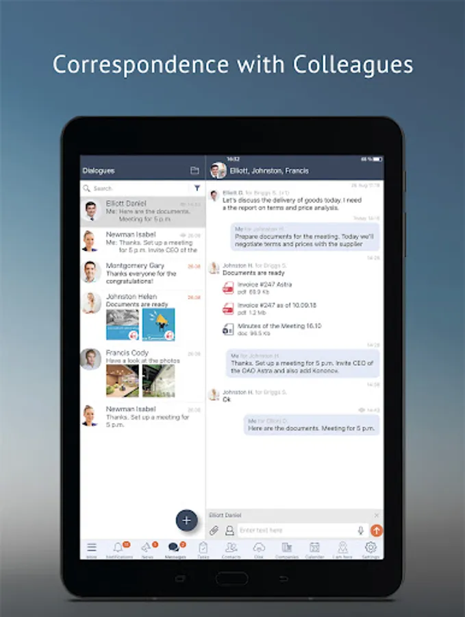 • Business Messenger – instant messages, exchange of documents and files, including those with electronic signature.