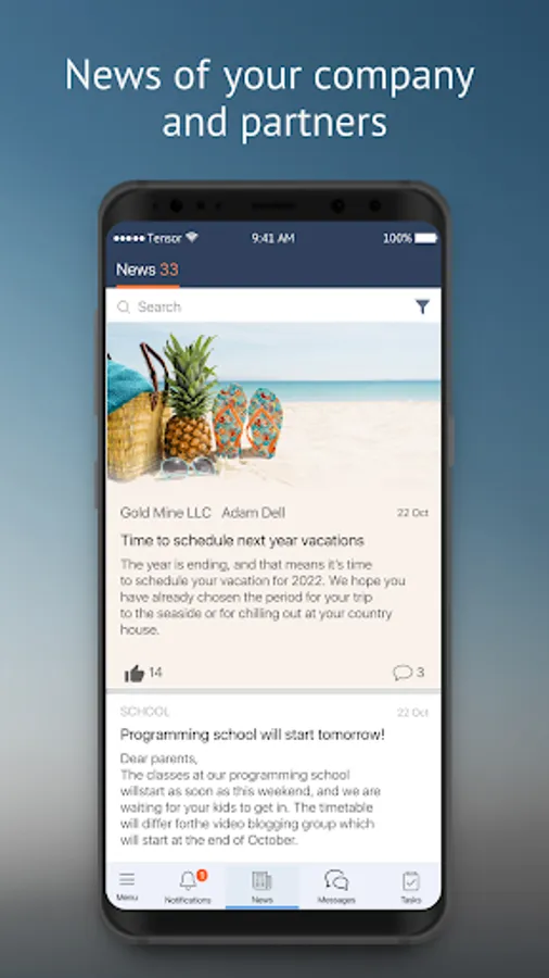 • News Feed – about your company changes, new orders, likes, reposts, comments.