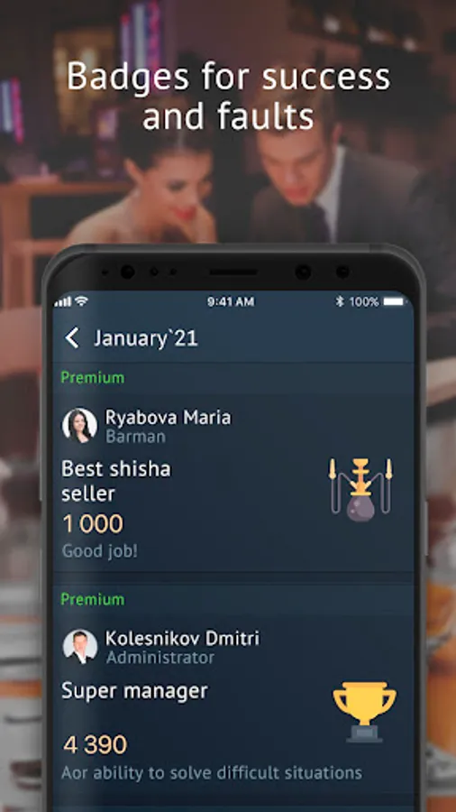 — Staff motivation — salary, bonuses, sales plans, badges for success and faults.