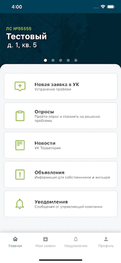 Territory is a mobile application for residents of residential complexes in Yekaterinburg, serviced by the TERRITORIA Management Company.