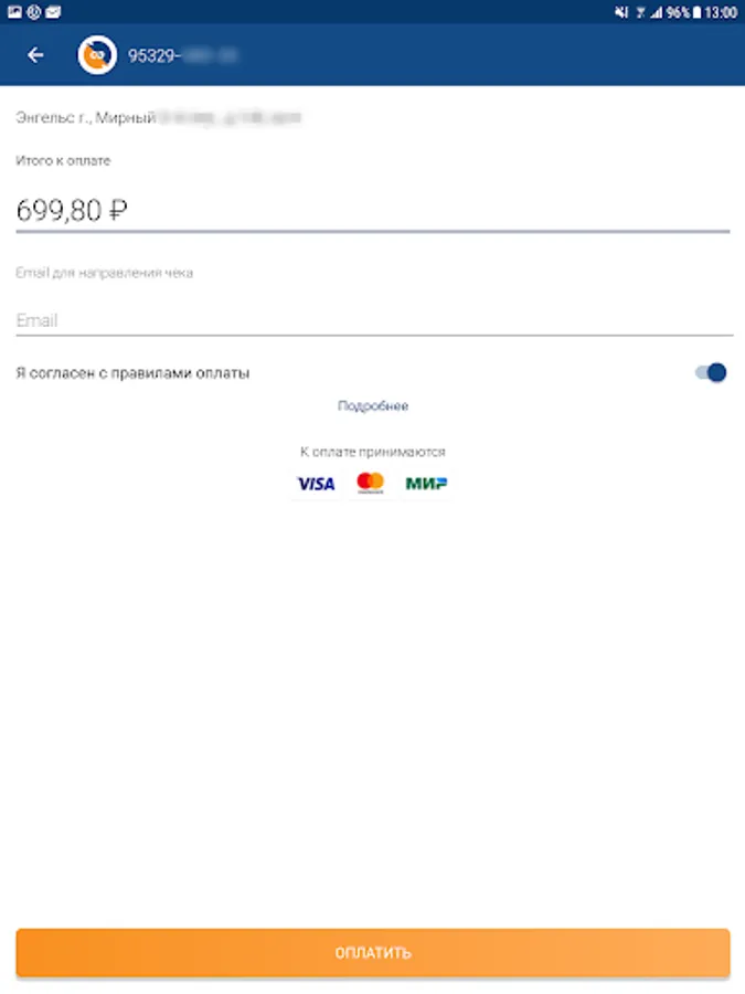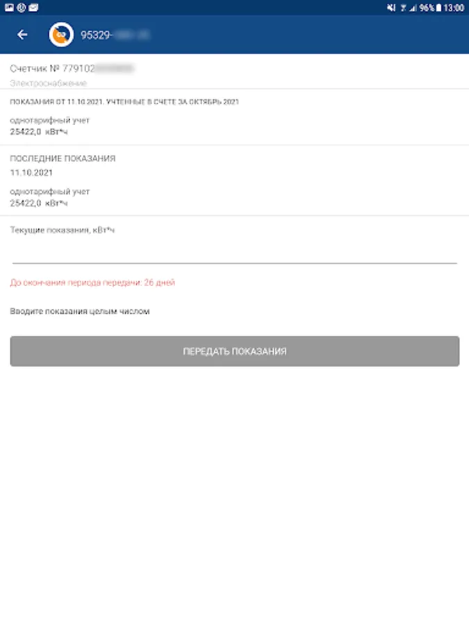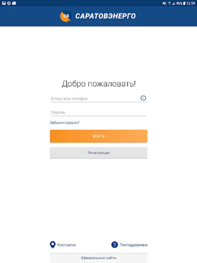 If you are registered in your Personal Account on the Saratovenergo PJSC website, you just need to use the phone number or e-mail and password you specified during registration to enter the application.