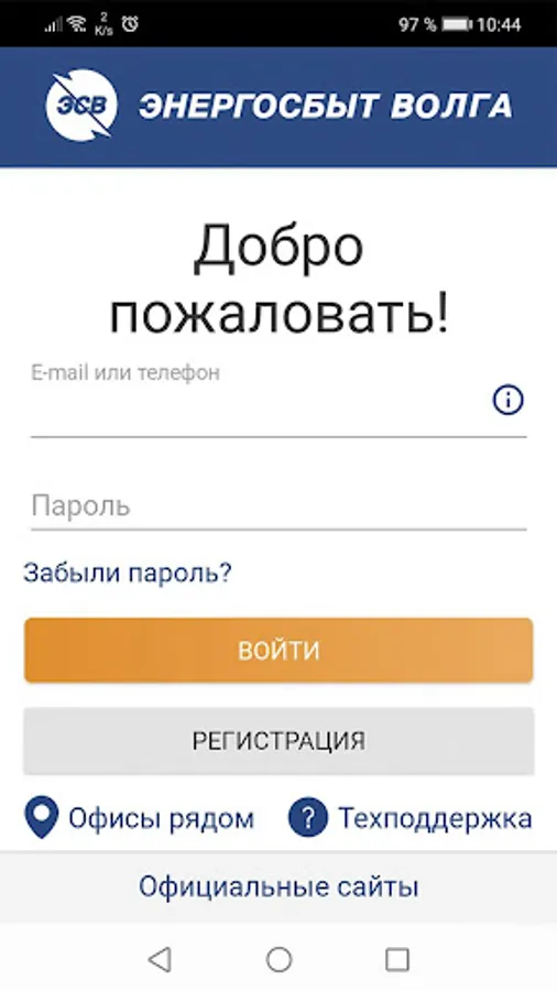If you are registered in the Client’s Personal Account on the website https://my.esbvolga.ru/auth/, to enter the application you just need to use the phone or e-mail specified by you during registration.