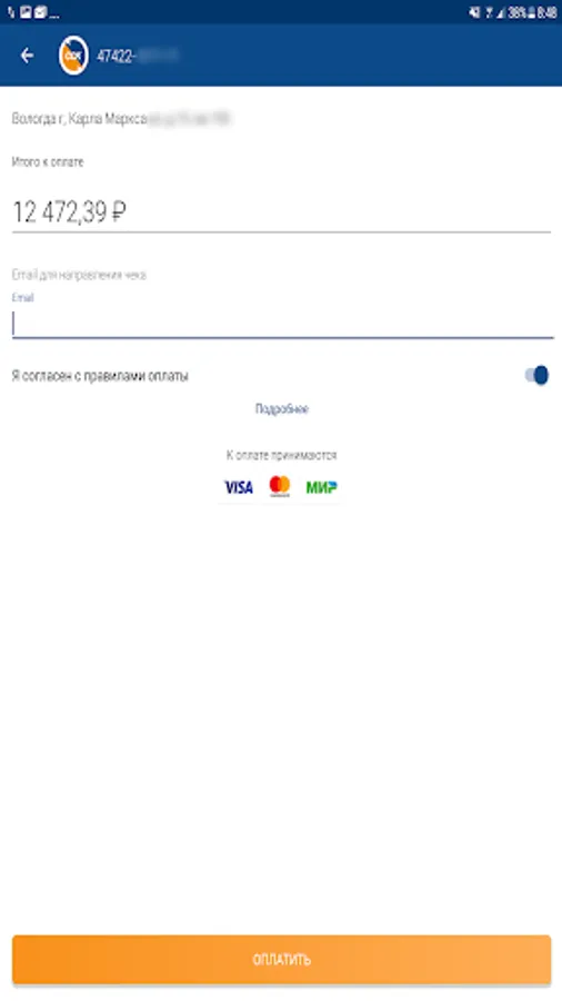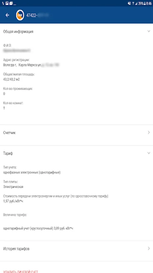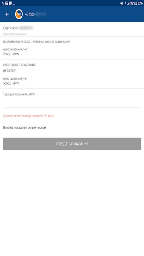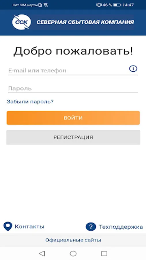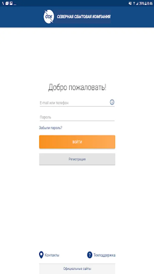 If you are registered in your Personal Account on the website of Severnaya Sbytovaia Kompaniya LLC, you just need to use the phone number or e-mail and password you specified during registration to enter the application.