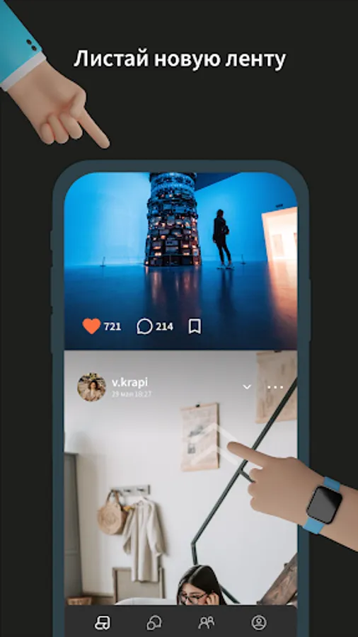 There is nothing superfluous in Potok. Just scroll through the feed, look for cool accounts, find new acquaintances or connections on the map or in the feed. Show what you can with the help of cards and look for someone you can connect with. The cards are in the profile of each person along with his content.