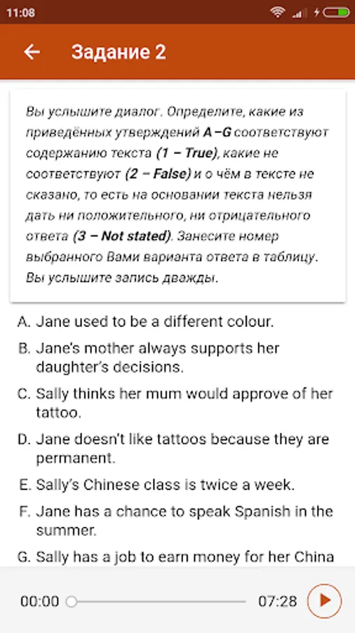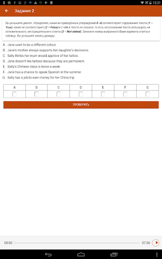 picture. In the oral part of the exam tests in English, you can record all your answers