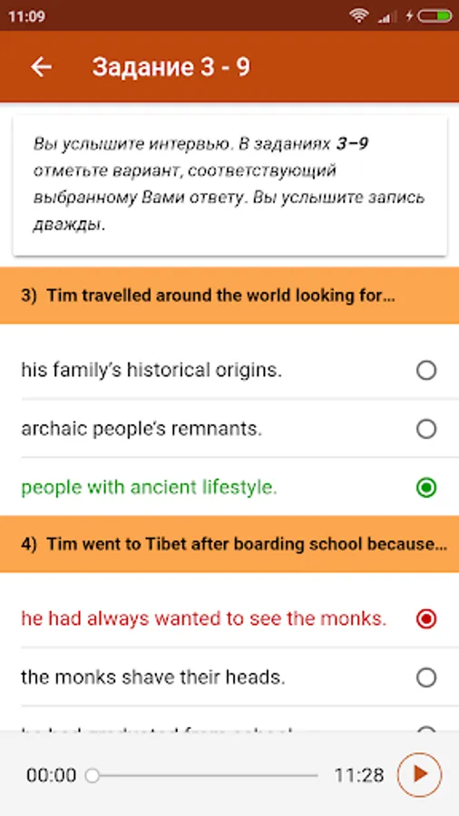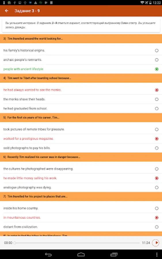 understanding. All test tasks are interactive, answers can be corrected as long as you