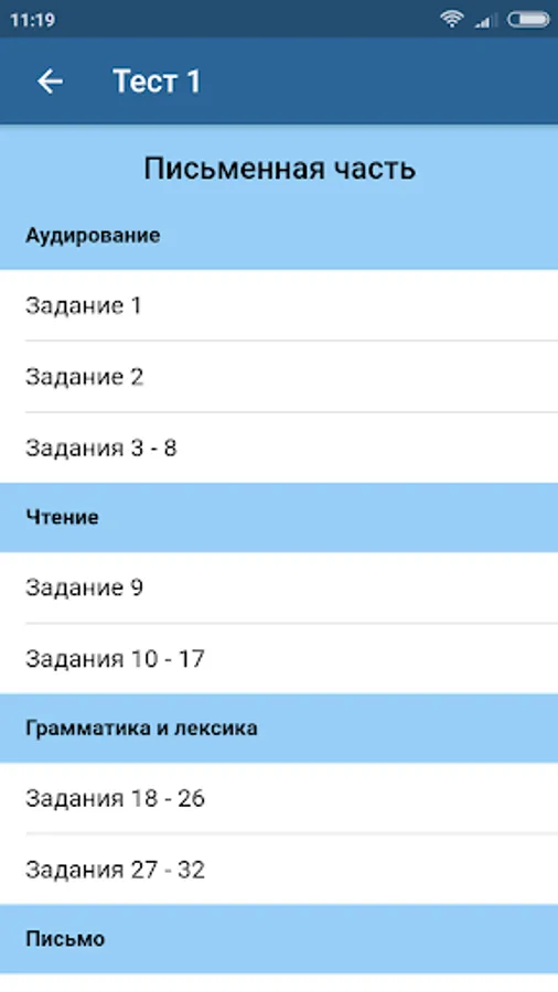 The application will help you prepare for the exam 2019-2020 in English using interactive training tests. 6 test cases were created by the developers of real examination materials under the guidance of Doctor of Pedagogical Sciences E. N. Solovova and in terms of format and complexity they correspond to the FIPI tests. In-app training tests include all