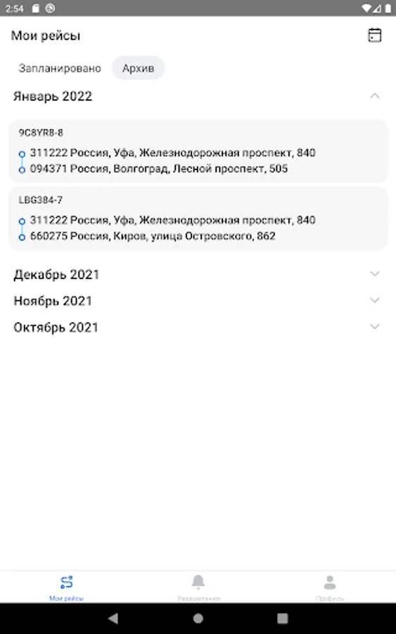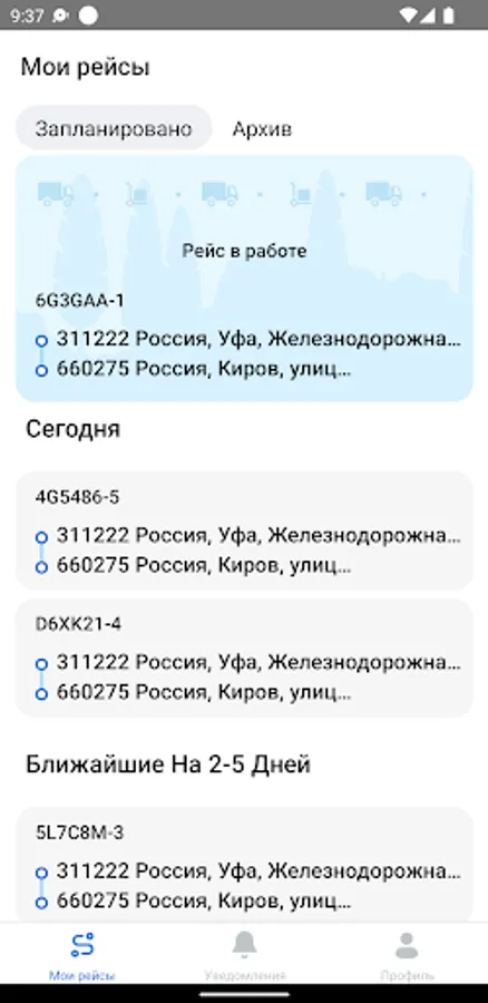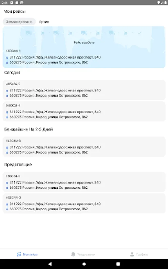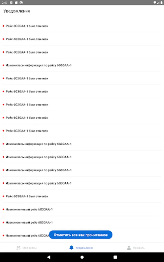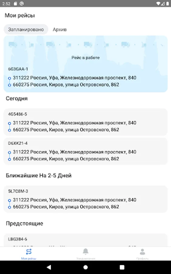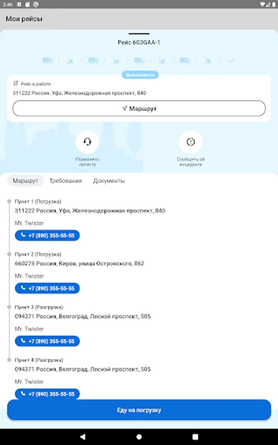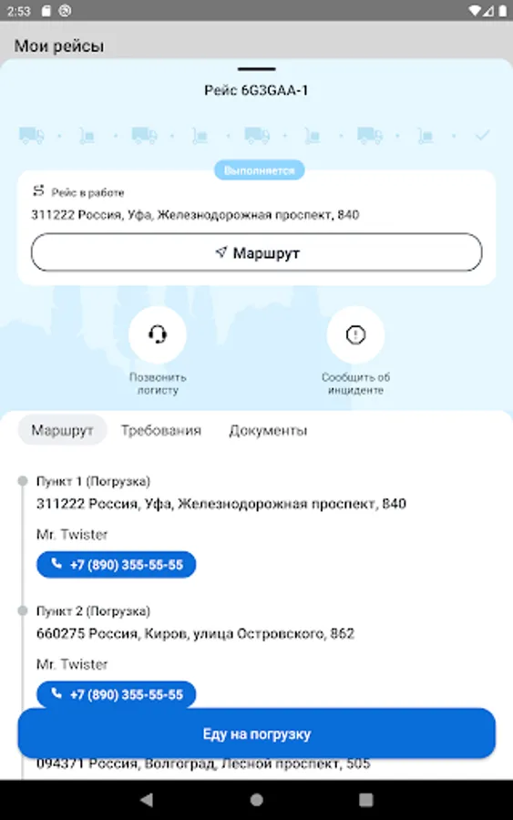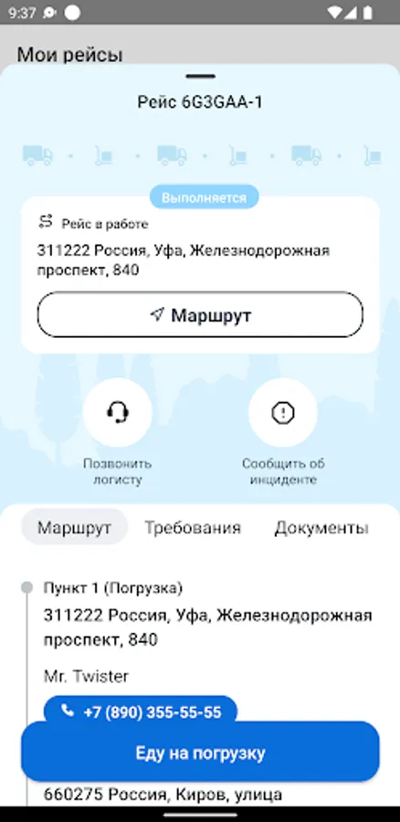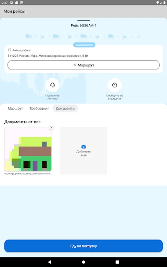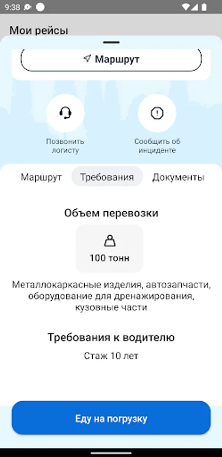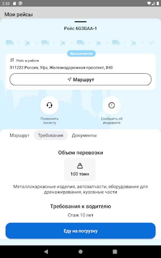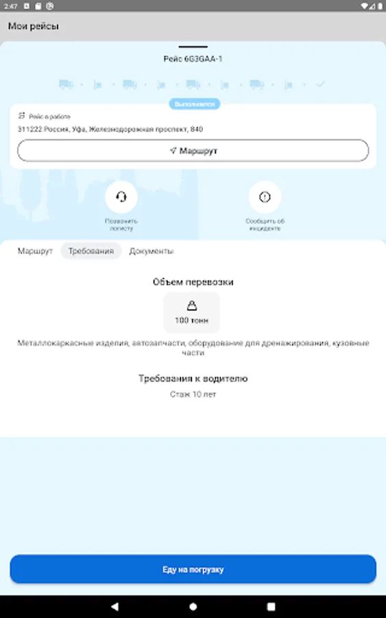 The application allows drivers to quickly find out details about a new scheduled flight, conduct all communication in one place, receive and download all the necessary accompanying documents for the flight, and quickly report on the situation on the road that affects the delivery of cargo.