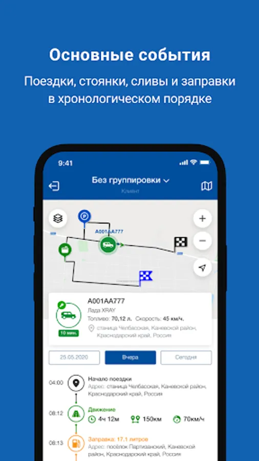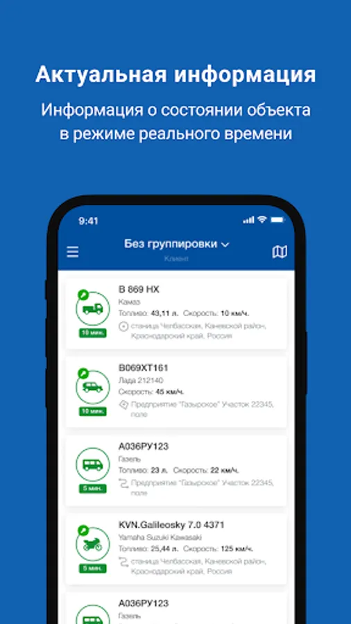 • grouping of vehicles by models, status, divisions of the company;
