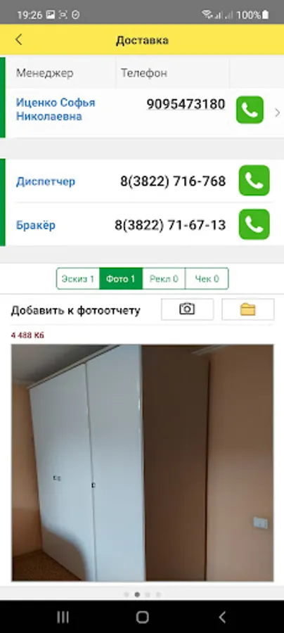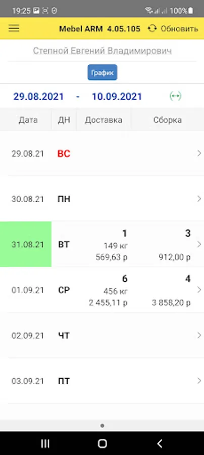 - Maintain a personal calendar of delivery and assembly tasks (add, sort your "personal" tasks) - such tasks are stored exclusively in the memory of the mobile device and are not synchronized with external storage