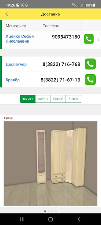 - View photos of sketches attached to the Order (for example, the arrangement of furniture in the 3D modeling program)