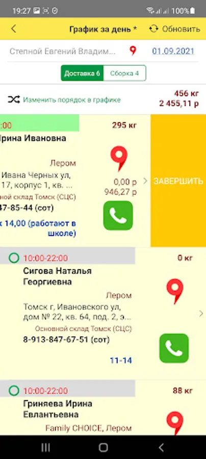 - Go straight from the mobile application to the route from your location to the client's address using the installed Yandex Navigator, Yandex Maps or 2GIS applications.