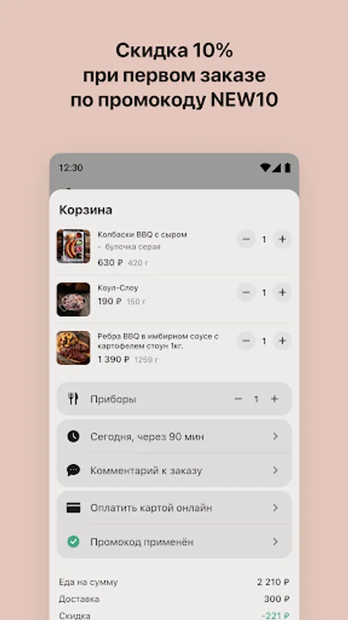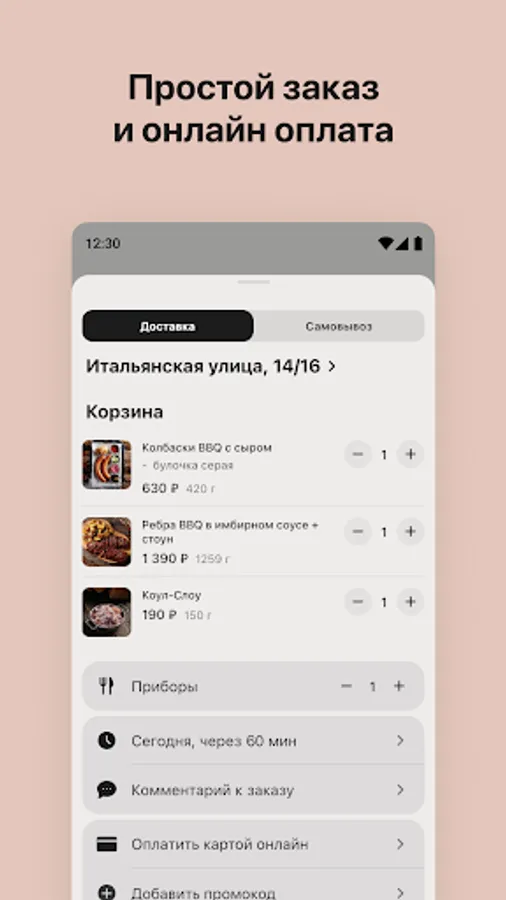 With the help of a mobile application, you can easily and conveniently order dishes at home and in the office.