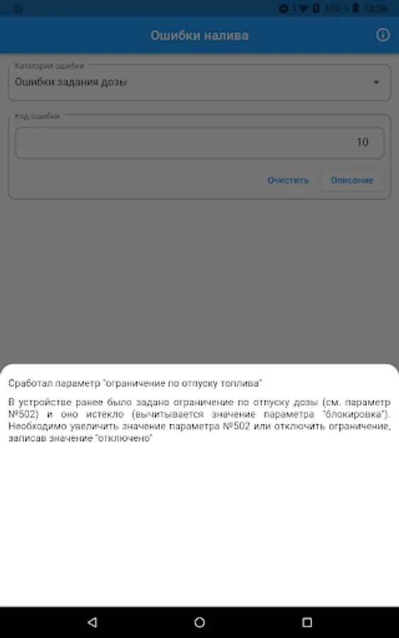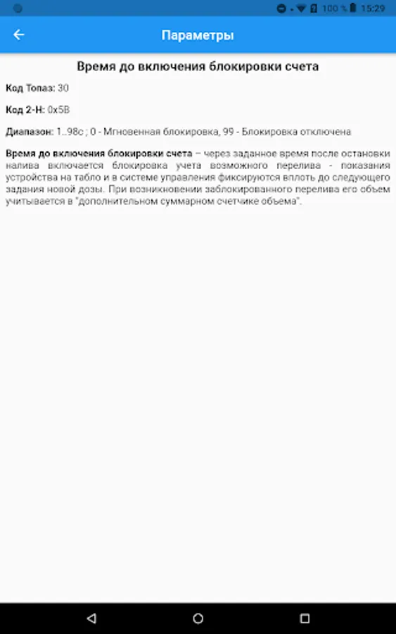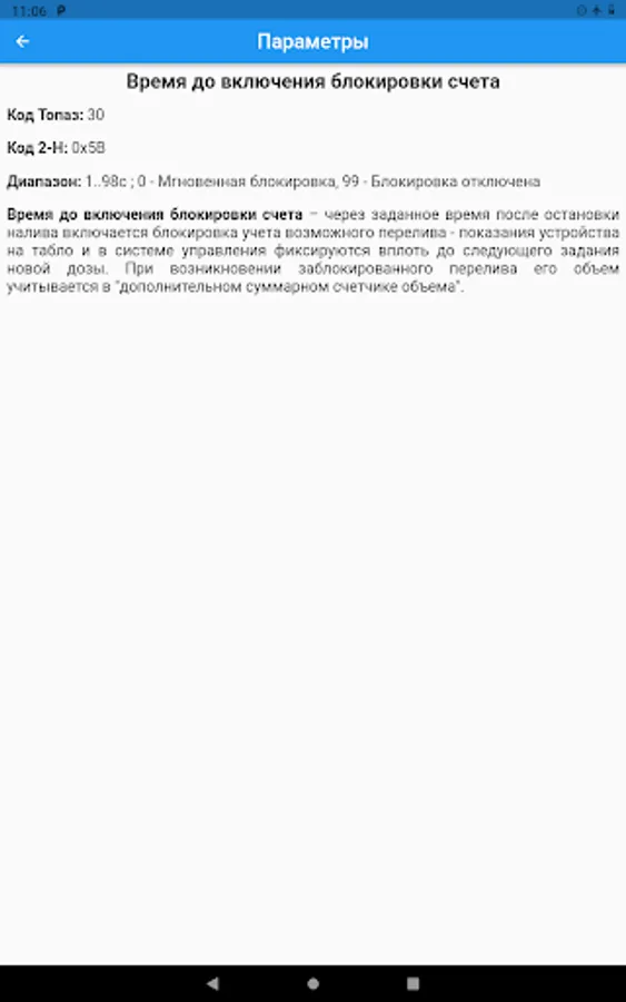 The application provides convenient access to the descriptions of parameters and error codes of Topaz devices.