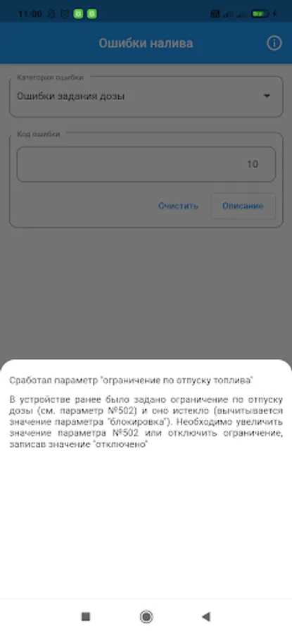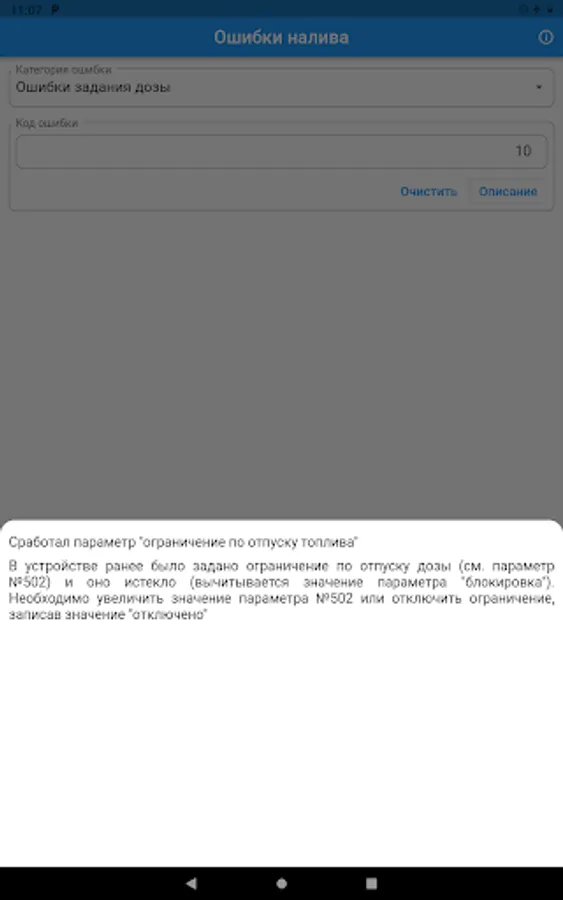 * decoding the error from the dispenser's display panel by the entered code.