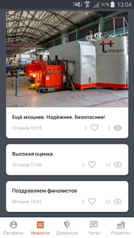 Employees can communicate in chats, keep abreast of the internal life of the company, receive notifications about important events, participate in competitions, contact support and post announcements.
