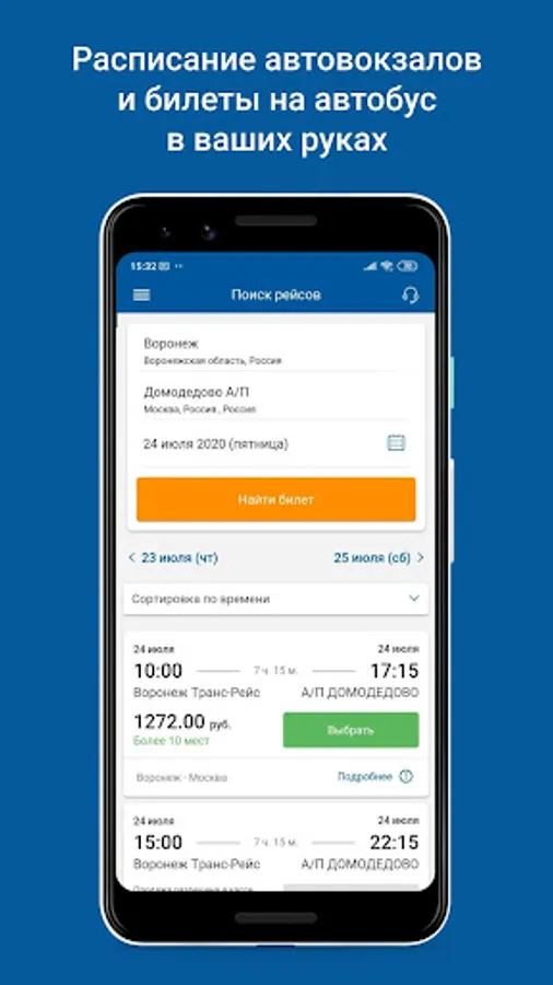Bus schedule and tickets in the direction Voronezh - Moscow - Voronezh.