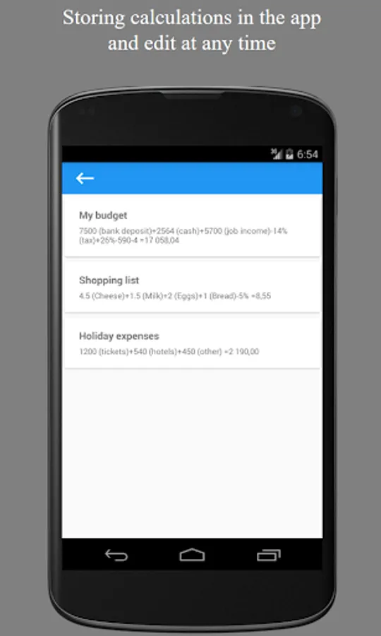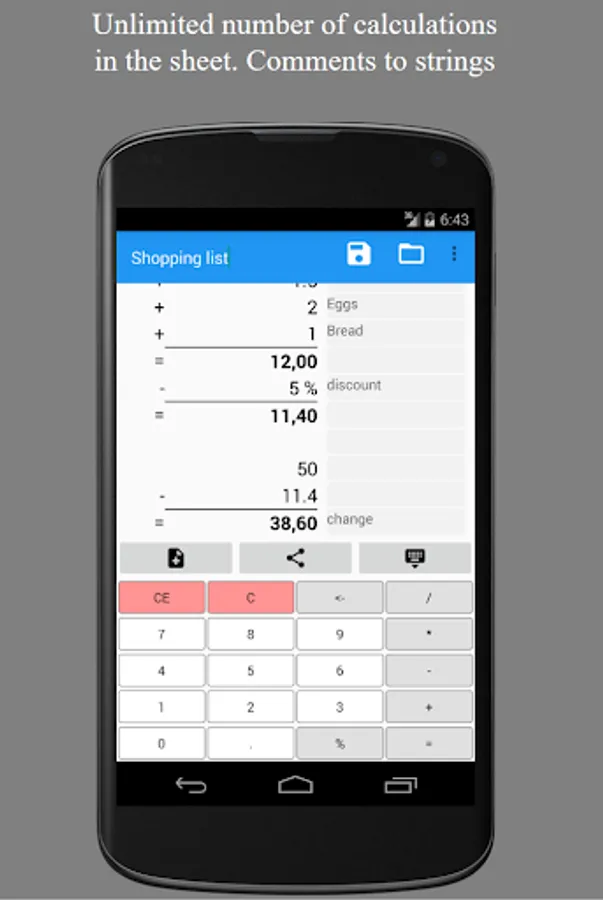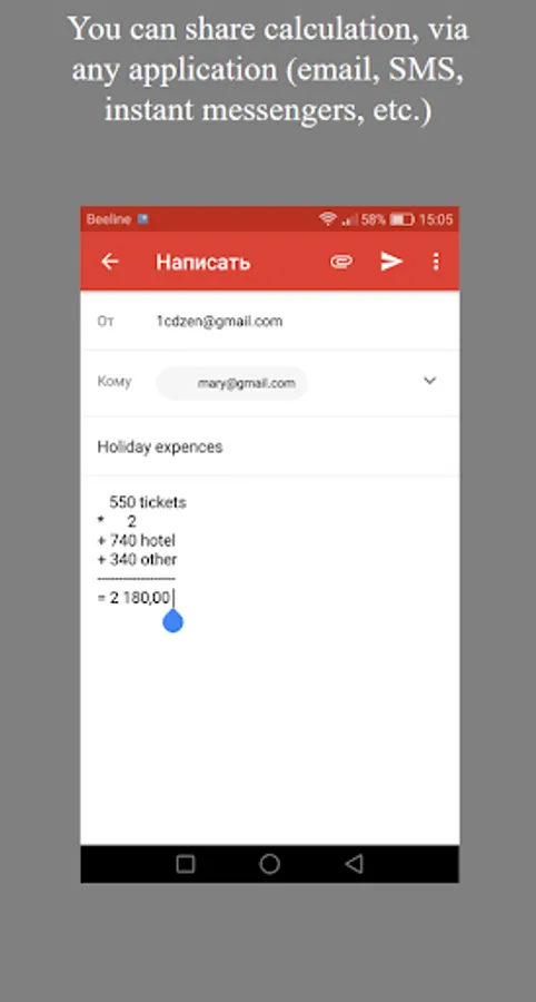 -Can share calculation via any text-based application on a smartphone (mail, instant messengers, etc.)