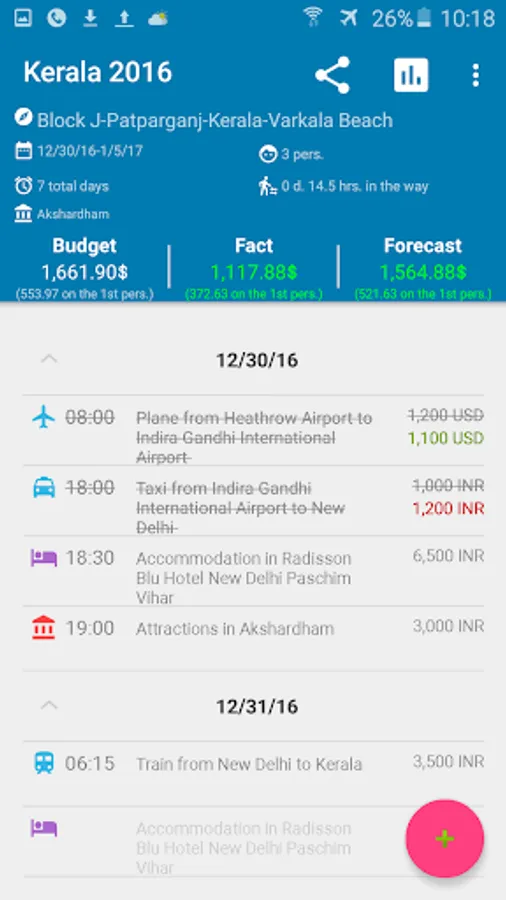 • Calculate budget travel, actual expenses and show the forecast for the rest of trip.