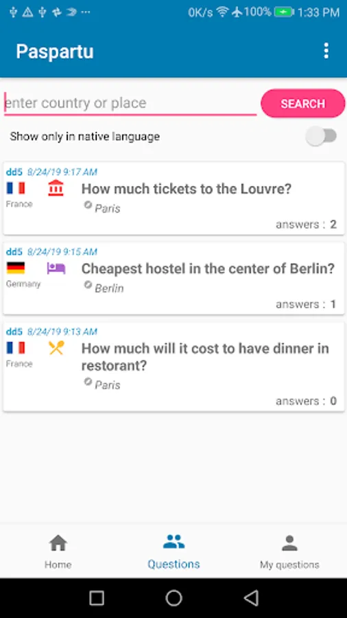 • Publish plans or their real trip in the cloud Paspartu, for others to use your invaluable experience for planning their trips
