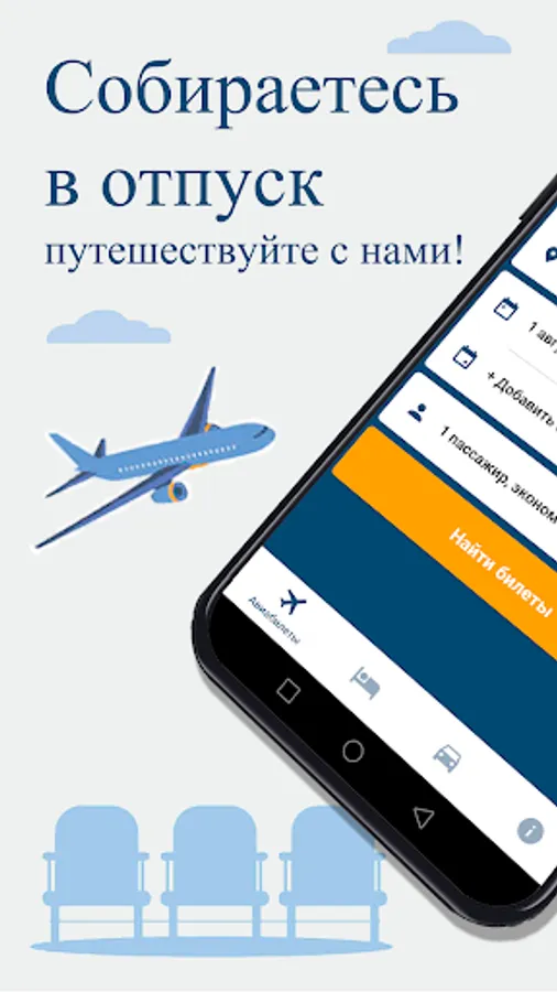 Cheap flights and hotels at your fingertips. The comprehensive search engine in the TravelSimply Avia app searches and compares flight prices from hundreds of airlines and travel agencies (including low cost carrier flights and charter flights), sending great flight deals straight to your smartphone or tablet. You may find it useful to search for a dream hotel at the place of arrival! TravelSimply Avia will find, compare offers of hundreds of thousands of hotels on leading booking services, and help you choose the best at a low price. The best prices for hotels and flights from all leading booking systems in one application.