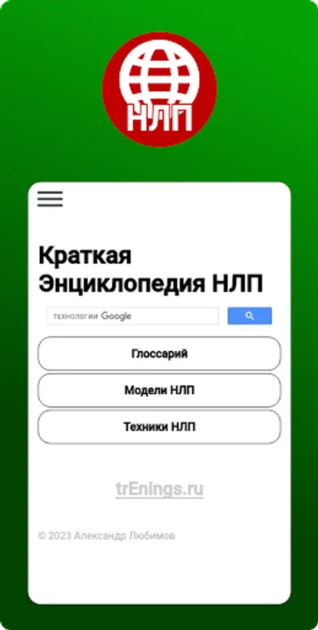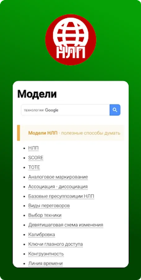 This is a short version of the "Encyclopedia of NLP" - only the most popular articles are left, and the articles themselves are reduced.