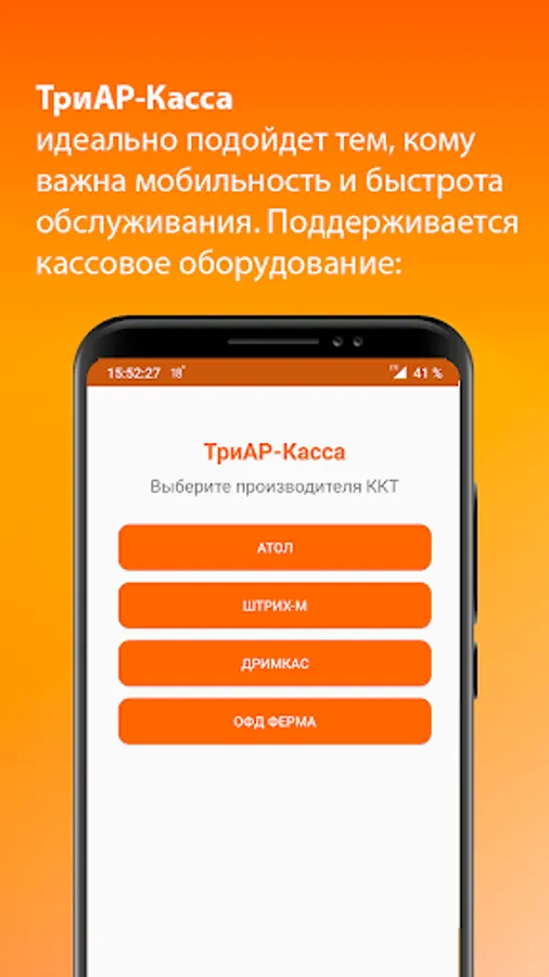 TriAR-Kassa is ideal for those who value mobility and speed of service. Supported cash registers: