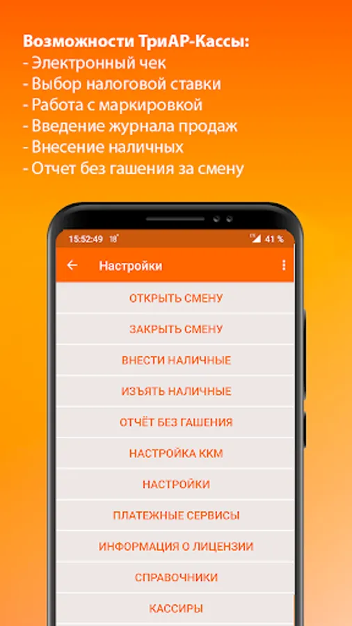 Features of TriAR-Kassa: