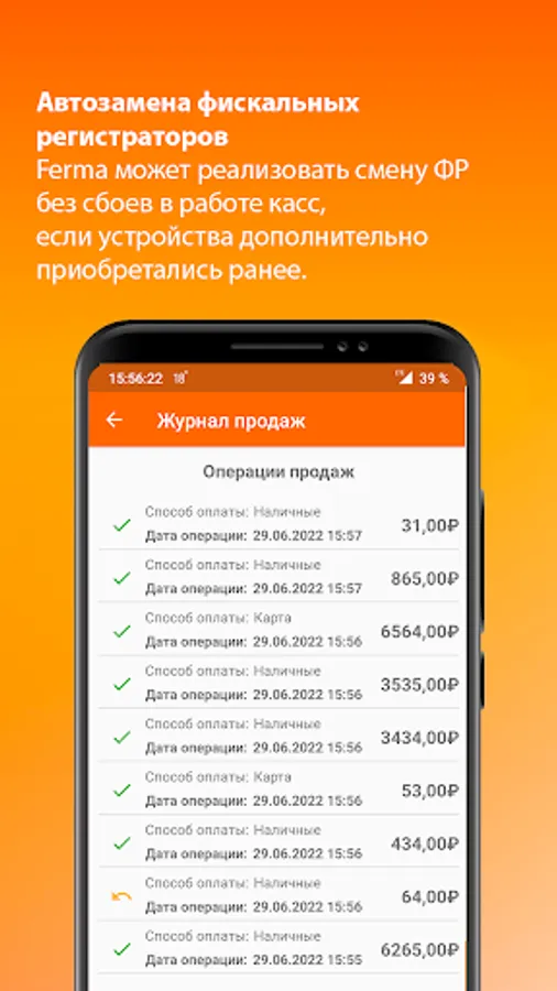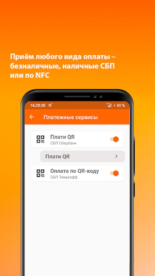 - Acceptance of any type of payment - non-cash, cash SBP or NFC