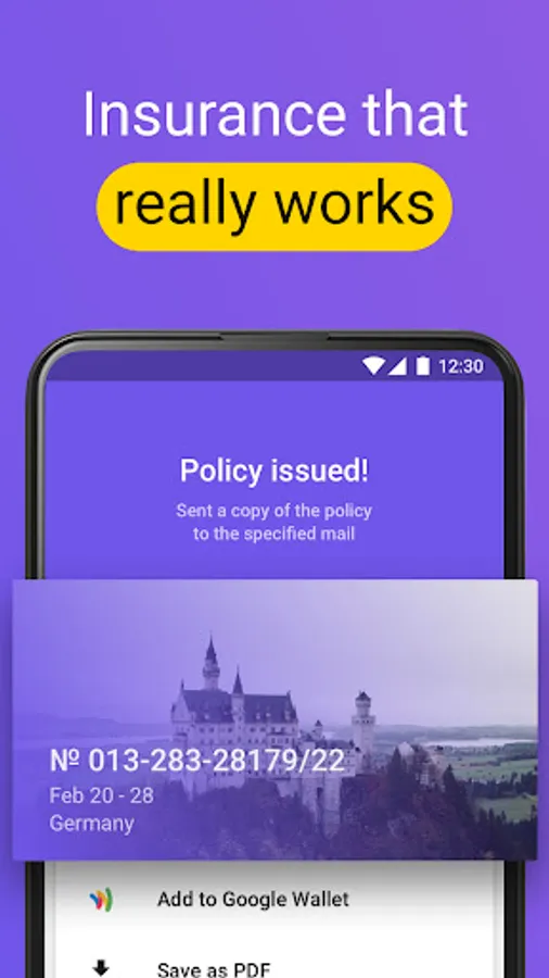 You need to spend only 4 minutes to buy our insurance certificate. It will be sent to your e-mail and made available through this mobile app. If an incident occurs, you could contact us through our online chat or call us free of charge via the app.
