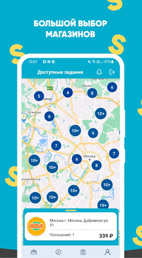 Go to one of your favorite stores: Magnit, Pyaterochka, Lenta, Azbuka Vkusa, Magnit Cosmetic, Auchan, Okay and earn money!