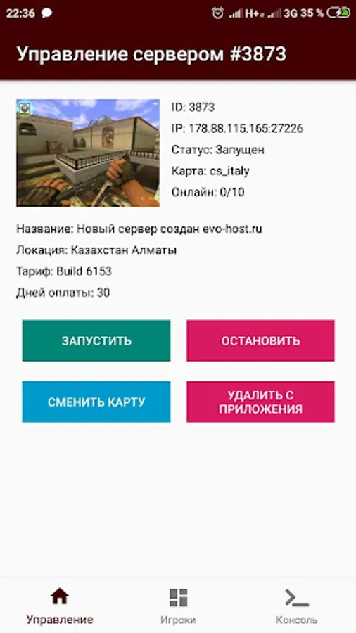This application allows you to manage your servers on Host24.SU using the API key that can be obtained in the server settings.