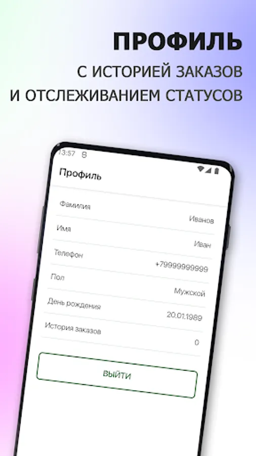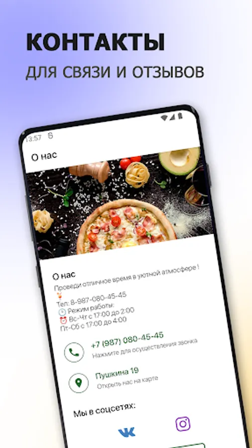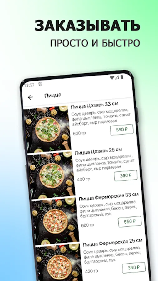 With the application, you can place an order with a few taps. Here you can order pizza, sushi and rolls, burgers, salads and hot dishes.