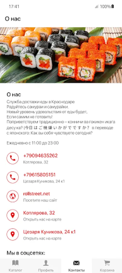 Rollstreet food delivery service in Krasnodar. Rejoice samurai and samurai. A new level of pleasure from food will be, if you do not cook yourself! Let's say traditional greetings - horsenichi wa gokiken ikaga desu ka? (今日 は ご 機 嫌 い か が で で す か? in Japanese: How are you feeling today?