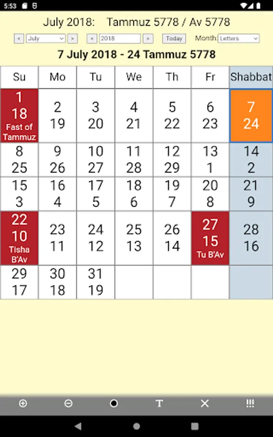 We present to your attention the application Jewish Calendar and Holidays (Lite).