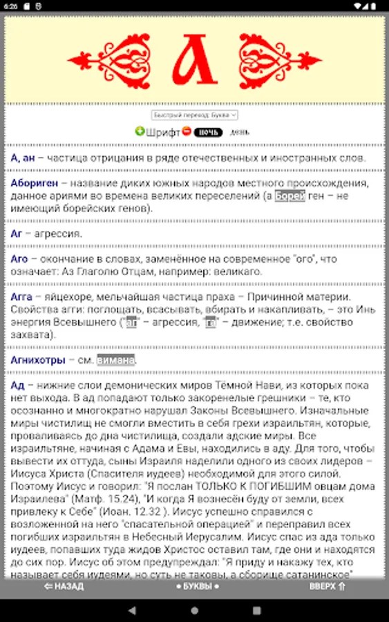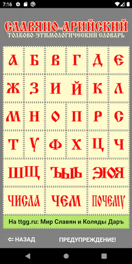 Goy esi! We present to your attention the application of the Slavonic-Aryan Dictionary.