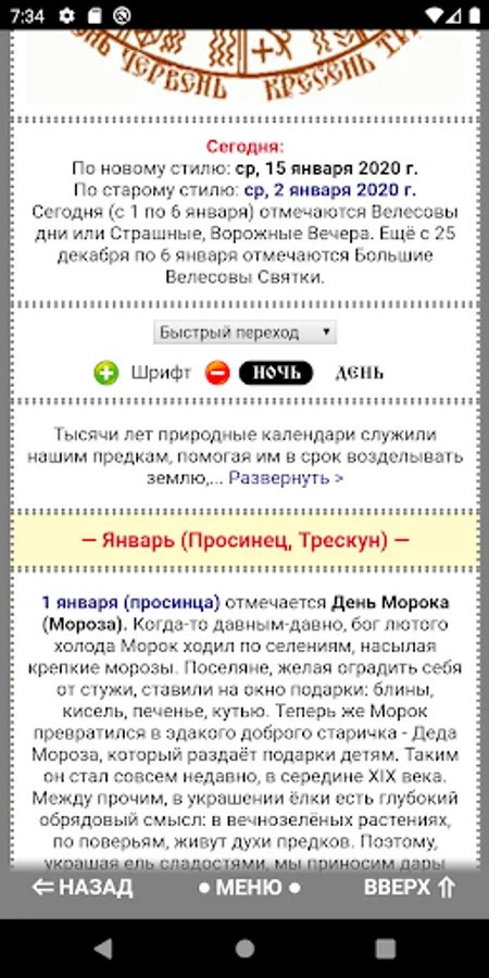 Added time synchronization with the calendar of Slavic holidays. Now you can see what holidays are taking place today.