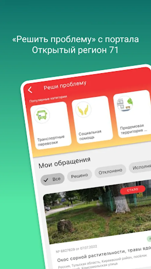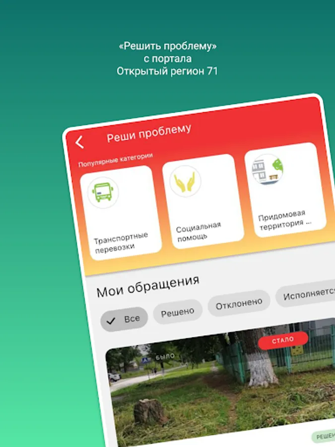 Portal service "Open Region 71". Report problems: garbage in the yard, potholes on the roads of Tula, lack of lighting and follow the progress of the solution