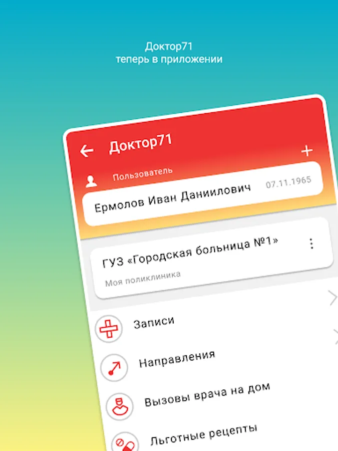 Make an appointment with a doctor at a state clinic, call a doctor at home, view the medical history, test results, and follow the appointments of specialists