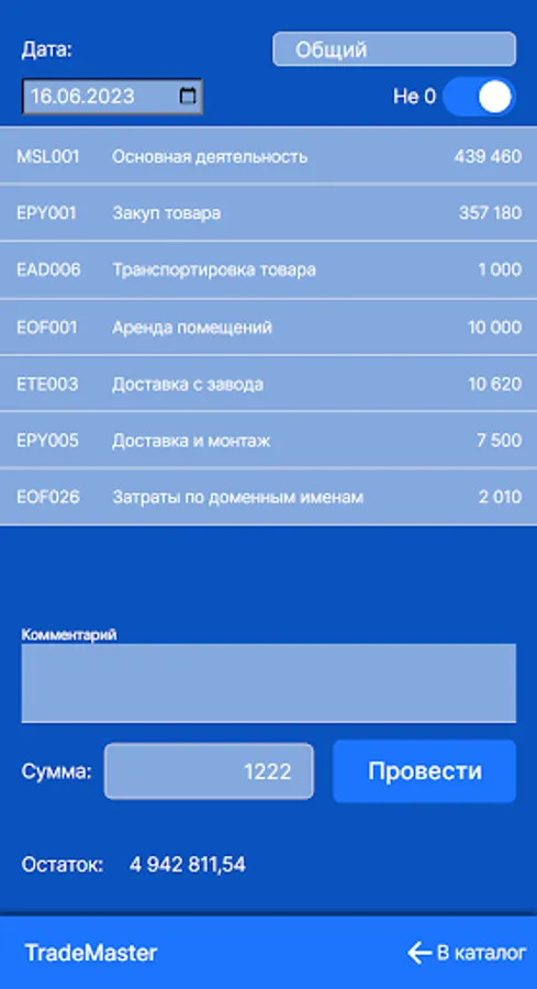 TradeMaster - automation of accounting and business processes in small businesses. In the mobile version, you can post expenses, issue an invoice for payment, and sell goods.